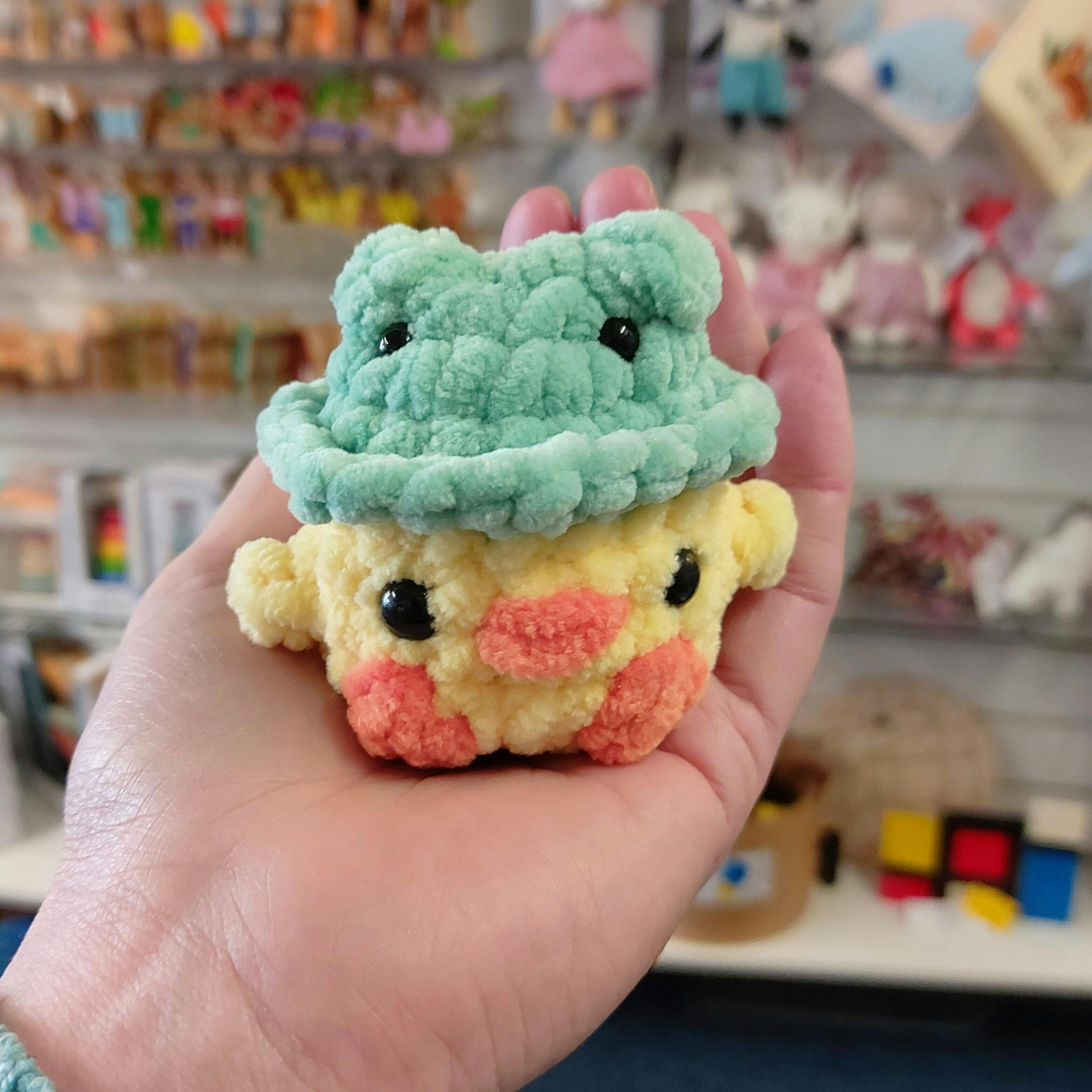 Mini Duck in Frog Hat Crochet Amigurumi Plushie
